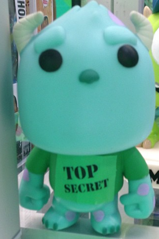 Observamos o detalhe que provavelmente a camisa do Sulley deve trazer estampado o símbolo da fraternidade que deve participar no filme, porém o fabricante preferiu evitar o spoiler, com uma mensagem “Top Secret”.